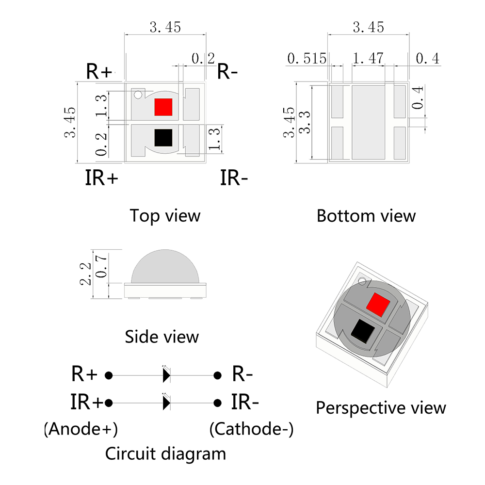 | JH-3535ZRIR12G30-T7A-660-850 | 2 | 660 | 10-15 lm | 2.0-2.4 | 350 | 120 |